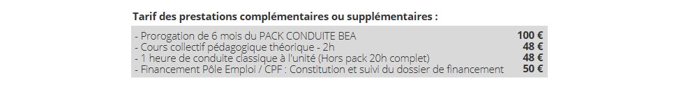 CONTENUS & TARIFS DES PACKS B & BEA :